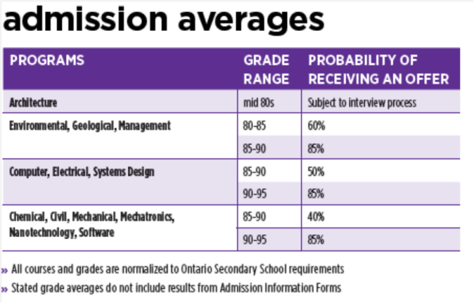 Another useful source of similar information is the CUDO data, available at http://www.cou.on.ca/statistics/cudo where you can find admission average data for engineering and other programs at various schools. Waterloo’s data is also available at here.
