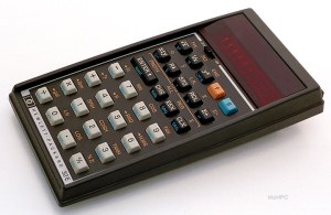 Like all calculators at that time, it had a power-draining LED display, so you had to be sure it was fully charged before an exam.  The main thing I loved about this calculator was its use of the Reverse Polish Notation (RPN) method for performing operations.  Looking closely at the picture, you’ll note the lack of an “=” button.  With RPN, instead of pressing “3 + 4 =”, you would press “3 Enter 4 +”.  Using RPN and the memory stack seemed more efficient and elegant to me, and could minimize keystrokes in more complex calculations.  Also, people in the class who used Texas Instruments calculators (the main rival calculator) didn’t know how RPN worked, so they wouldn’t ask to borrow it when their batteries died.