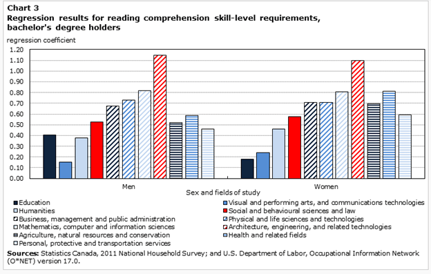 An interesting post from our friends at Higher Education Strategy Associates, summarizing a Statistics Canada study on employment skills requirements. A couple of graphs are reproduced below, and follow the link above for more details, but here’s a quick take-away from my perspective.