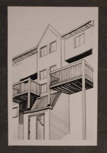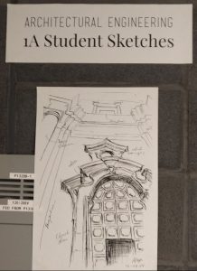 I noticed some student work posted on a wall recently, from our first 1A Architectural Engineering class. Here are just a couple of examples. They were all quite good, much better than I could do. I assume that all the students weren’t so naturally-talented, so they must have learned some useful drawing techniques during the Fall term. Nice work!
