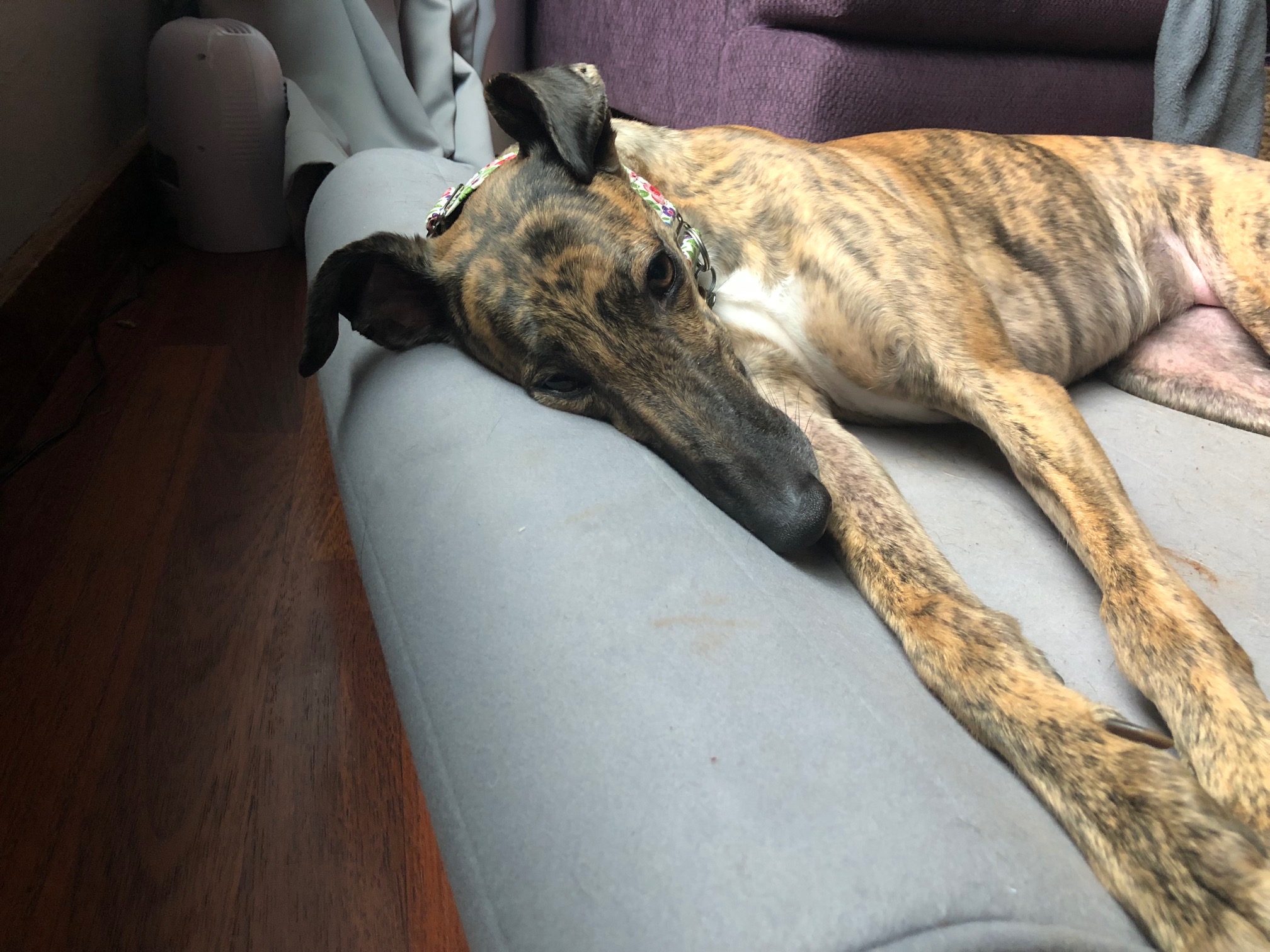 A resting Greyhound.